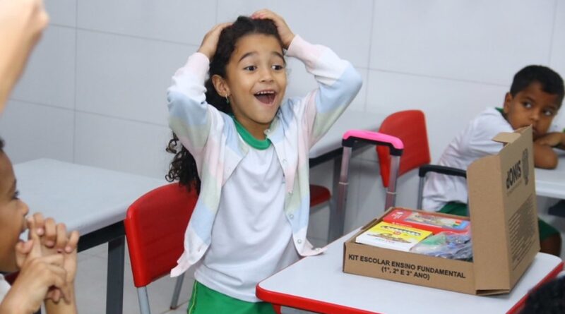 A estudante Angeline Correia recebeu o kit escolar das mãos do prefeito e comemorou. “Foi muito legal. Ele falou que ia entregar as caixas de material para a gente estudar. Achei muito legal e encontrei muitos materiais na caixa”, relatou.