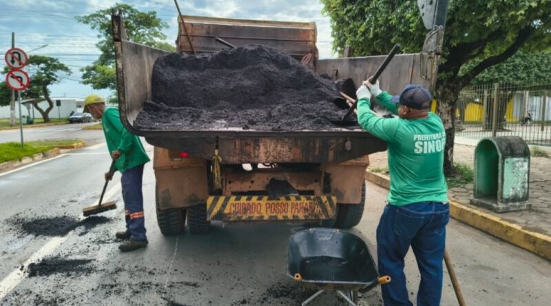 Prefeitura de Sinop intensifica serviços de tapa-buracos e limpeza urbana em diversos bairros