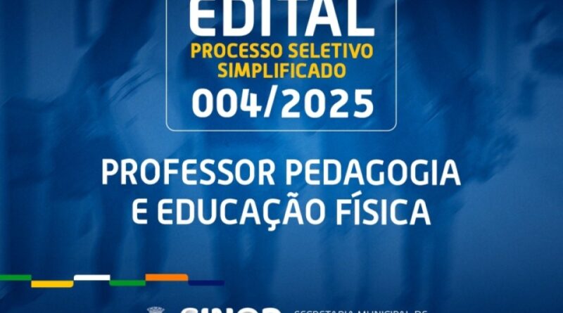 A Prefeitura de Sinop, por meio da Secretaria de Educação, lançou hoje (11) o Edital de Processo Seletivo Simplificado nº 004/2025 para contratação de professores pedagogos e de educação física, com carga horária de 30 horas, para atender a demanda da rede da educação básica de Sinop. Os professores serão contratados em caráter excepcional e por tempo determinado para o ano letivo de 2026.