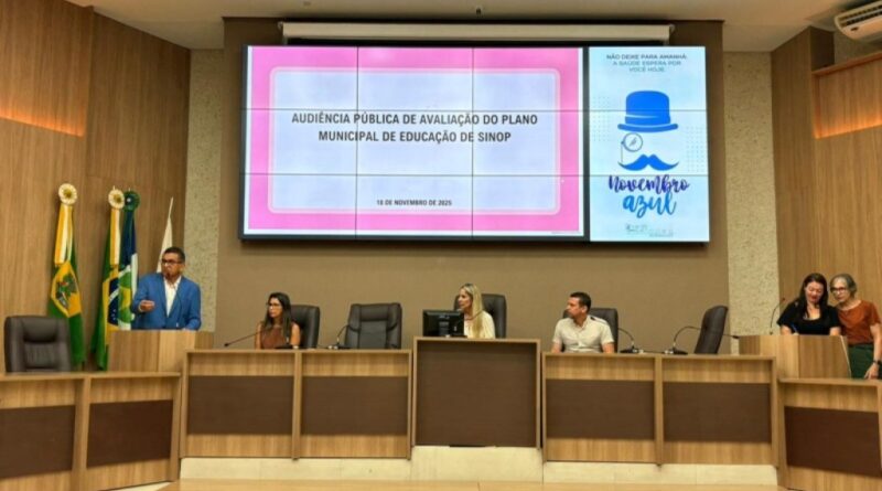 A Prefeitura de Sinop, por meio da Secretaria de Educação e do Fórum Permanente de Educação do Município de Sinop (FPEMS), realizou na manhã desta terça-feira (18) uma audiência pública dedicada à apresentação da avaliação final do Plano Municipal de Educação (PME). O encontro, realizado no Plenário Deputado Jorge Abreu da Câmara Municipal, marcou formalmente o encerramento do ciclo decenal iniciado em 2015 e abriu espaço para refletir sobre os caminhos que irão orientar o novo plano a partir de 2026.