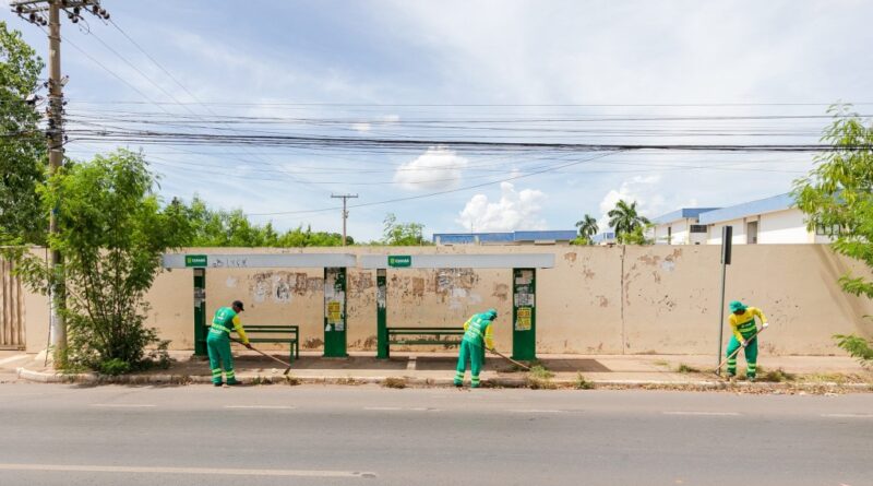 Prefeitura inicia grande operação de limpeza em pontos de ônibus e abrigos de passageiros em Cuiabá