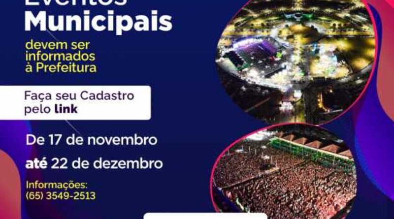 A Prefeitura de Lucas do Rio Verde deu início à organização do Calendário Oficial de Eventos 2026. Para evitar conflitos de datas entre ações municipais, privadas ou filantrópicas, os organizadores interessados devem realizar o cadastro das informações sobre seus eventos por meio de um formulário on-line, disponível no link forms.lucasdorioverde.mt.gov.br/portal/evento?id=5IUXDRM9ZCKF84LQ2EGH, entre os dias 17 de novembro e 22 de dezembro.