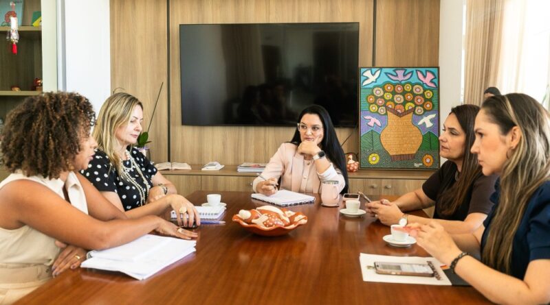 A primeira-dama e vereadora de Cuiabá, Samantha Iris, e as secretárias municipais Danielle Carmona (Saúde), Ana Karla (Comunicação), Hadassah Suzannah (Mulher) e Hélida Vilela (Assistência Social, Direitos Humanos e Inclusão) se reuniram, nesta quarta-feira (21), para debater e alinhar políticas públicas voltadas às mulheres, bem como à proteção de crianças e adolescentes.