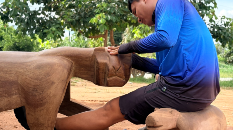 Na etapa de consultoria, o artista já começou a produzir peças a partir de árvores da região, conhecidas por “pakula”. Na aldeia, no Parque Nacional do Xingu, a criação das obras envolve até o momento no mínimo 20 indígenas do total de aproximadamente 340 que vivem na região, e outras sete pessoas em Cuiabá.