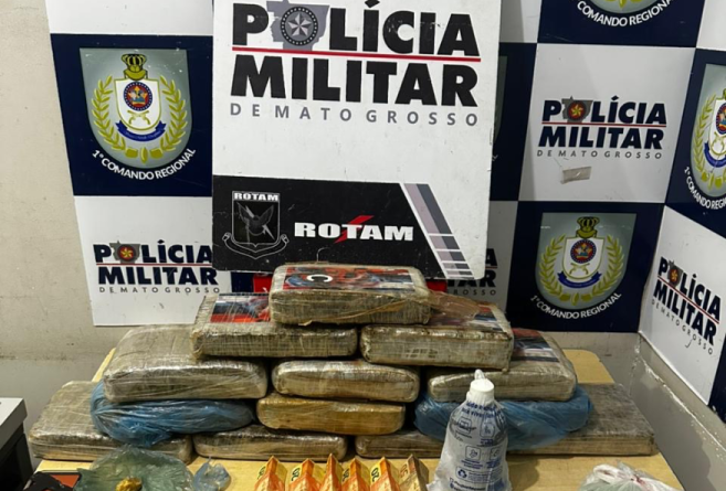 Policiais militares do Batalhão de Rondas Ostensivas Tático Móvel (Rotam) prenderam dois homens, de 28 e 42 anos, por tráfico ilícito de drogas, na tarde desta sexta-feira (13.3), em Cuiabá. Na ação, foram apreendidos 13 tabletes de substância análoga à maconha, além de porções de pasta base de cocaína e materiais utilizados na preparação de entorpecentes.
