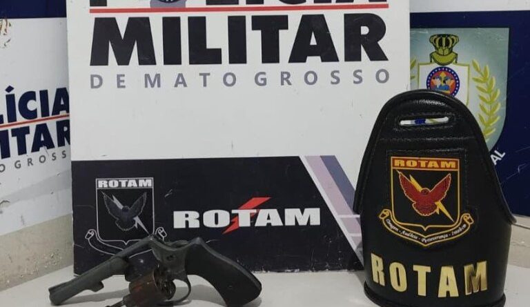 Policiais militares do Batalhão de Rondas Ostensivas Tático Móvel (Rotam) prenderam em flagrante um homem, de 22 anos, por porte ilegal de arma de fogo, na noite desta terça-feira (25.11), em Cuiabá. Com o suspeito, a equipe apreendeu um revólver de calibre .22.