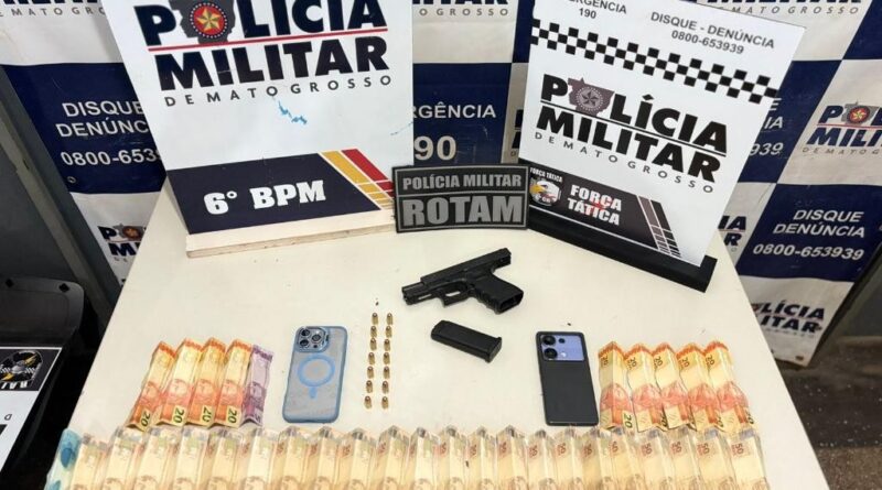 Policiais militares do Batalhão de Rondas Ostensivas Tática Móvel (Rotam) do 6º Batalhão prenderam um homem, de 39 anos, por porte ilegal de arma de fogo, na noite deste sábado (15.11), em Cáceres. Com o suspeito, os policiais apreenderam uma pistola calibre .380 e 14 munições do mesmo calibre, e uma quantia de R$1.385,00 em dinheiro.