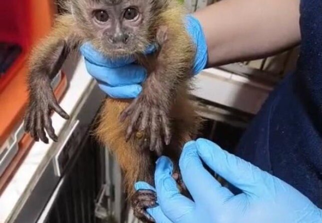 Sema encaminha filhote de macaco-prego resgatado em Alta Floresta para atendimento em clínica veterinária