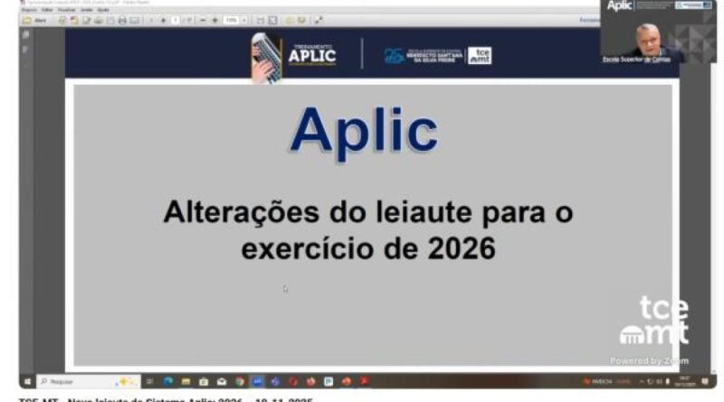 O Tribunal de Contas de Mato Grosso (TCE-MT) apresentou o novo leiaute do Sistema Aplic (Auditoria Pública Informatizada de Contas) para o exercício de 2026 aos jurisdicionados, dando continuidade às ações de orientação e apoio técnico oferecidas pela Corte. O encontro online foi conduzido por representantes da Secretaria-Geral de Controle Externo (Segecex) e Secretaria Executiva de Tecnologia da Informação (SETI) nesta quarta-feira (19).