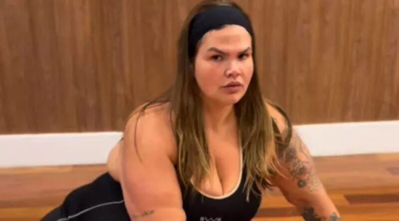 Thais Carla, de 34 anos, mostrou nesta sexta-feira (19), o corpo após perder cerca de 75 kg. Em um vídeo nas redes sociais, a dançarina aparece se arrumando para treinar, começando de toalha e depois vestindo short e top justos, que ajudam a sustentar os seios e o excesso de pele.
